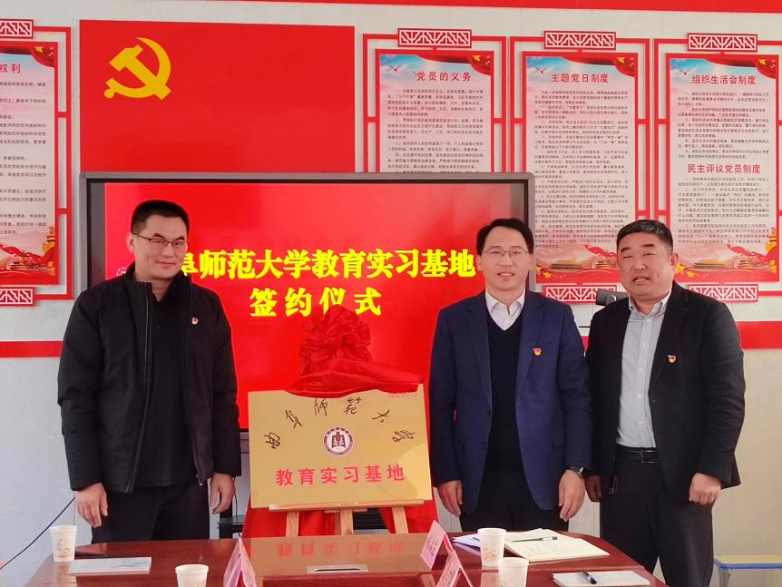 体育学部党委书记许怀祥与黄店镇中学校长付永生共同签署实习基地合作协议,并举行揭牌仪式。许怀祥表示,该基地将成为2048核基地