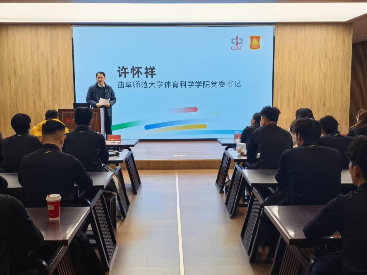 许怀祥发表致辞他首先代表学院全体师生,向远道而来的专家讲师、工作人员及参训学员致以热烈欢迎与诚挚问候,并以“儒家文化”与“曲园实力”为核心,展现了学校与学院在体育教育领域的深厚积淀。许怀祥介绍了学校、学院篮球相关专业设施和人才培养成果希望大家在培训班珍惜学习时光,汲取新知识、新技能。