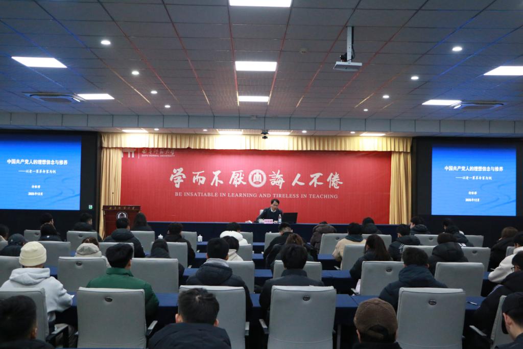 许怀祥以《中国共产党人的理想信念与修养——以老一辈革命家为例》为题,从正确坚定的理想信念、敢于担当的使命意识、严守纪律的大局观念、廉洁奉公的公仆精神、高尚纯洁的道德情操五个方面展开深入讲解。结合毛泽东、周恩来、朱德等老一辈革命家的鲜活事例,生动诠释了共产党人的信仰力量与人格魅力:从陈望道蘸墨汁译《共产党宣言》的“信仰味道”,到彭德怀临危受命抗美援朝的责任担当;从古田会议确立的纪律规矩,到毛泽东、周恩来廉洁奉公的公仆本色;从老一辈革命家虚怀若谷的胸襟,到他们重亲情、敬师长、惜战友的高尚情操,一个个感人至深的故事让在场学员深受触动。