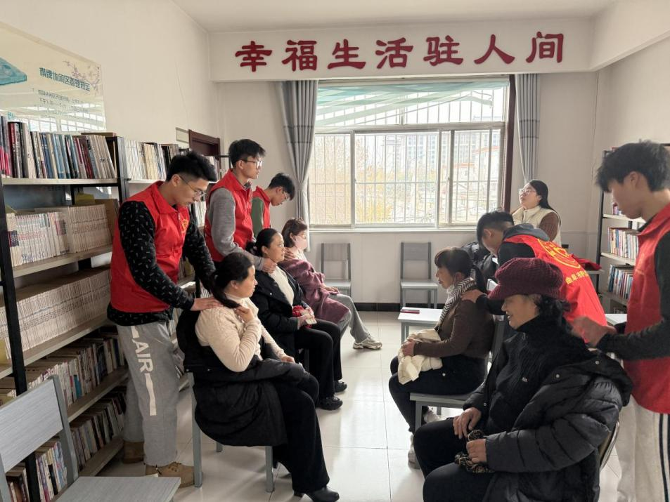 青年志愿者走进奎文社区,开展"健康重启站"社区运动康复志愿服务活动志愿服务活动,为社区中老年人送去贴心关怀。