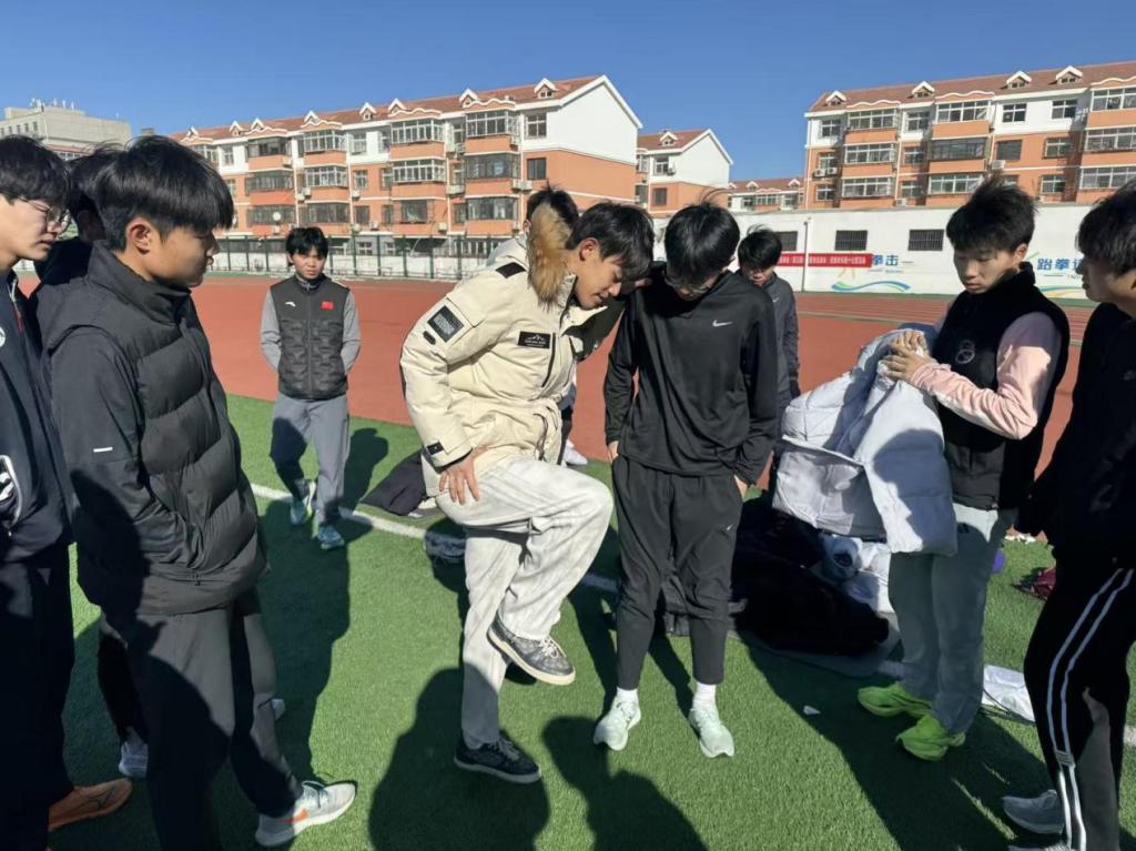活动聚焦田径运动的基础核心。实践队员们不再仅是学习者,更是彼此的训练伙伴与“技术督导”。他们针对起跑技术、途中跑姿势、专项柔韧拉伸、核心力量激活等关键环节,进行细致的分解练习与互评互助。通过相互观察动作细节、即时反馈纠正,他们将课堂所学的运动生物力学、训练方法学等理论知识,转化为对自身技术动作的深刻感知与精准调控,在反复打磨中追求技术的规范与效率的提升。