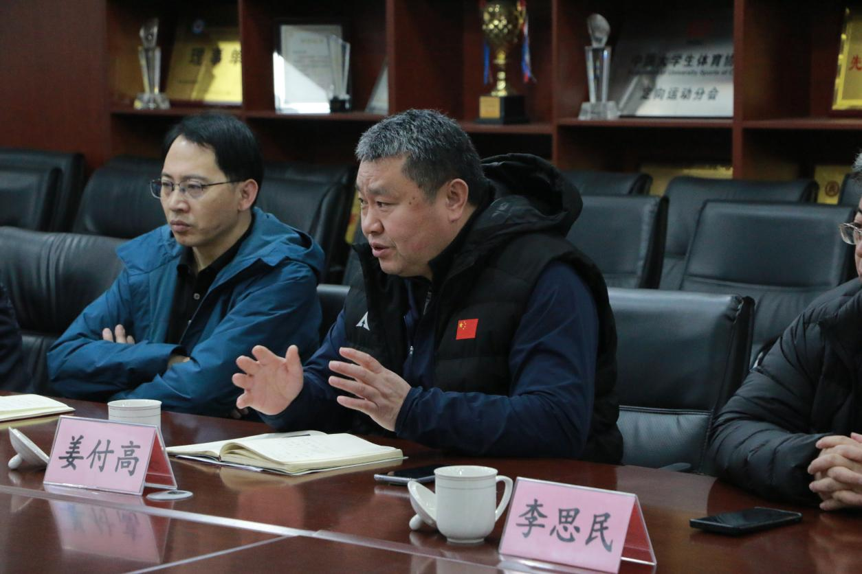 会议伊始,许怀祥对济宁市体育局一行的到来表示热烈欢迎,并简要介绍了体育科学学院在足球人才培养、学科建设及赛事参与等方面的成果。姜付高表示,将全力支持济宁市足球赛事筹备工作,积极配合开展队员选拔与训练,为地方体育事业贡献力量。同时,体育科学学院也希望以此次合作为契机,深化产教融合,为学生搭建实践平台,提升专业人才培养质量。