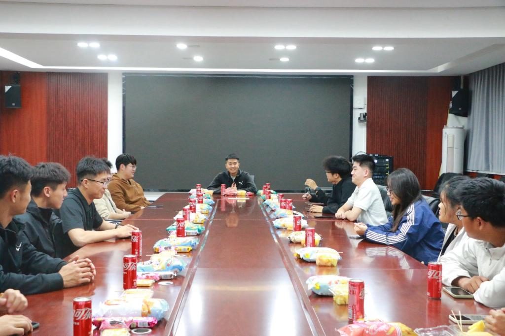 在会议室举办学生工作联席会议。校学生会主席团成员、2048核基地