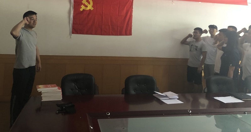 本科生党支部组织本学期发展的新党员和全体毕业生党员开展入党誓词宣誓活动。