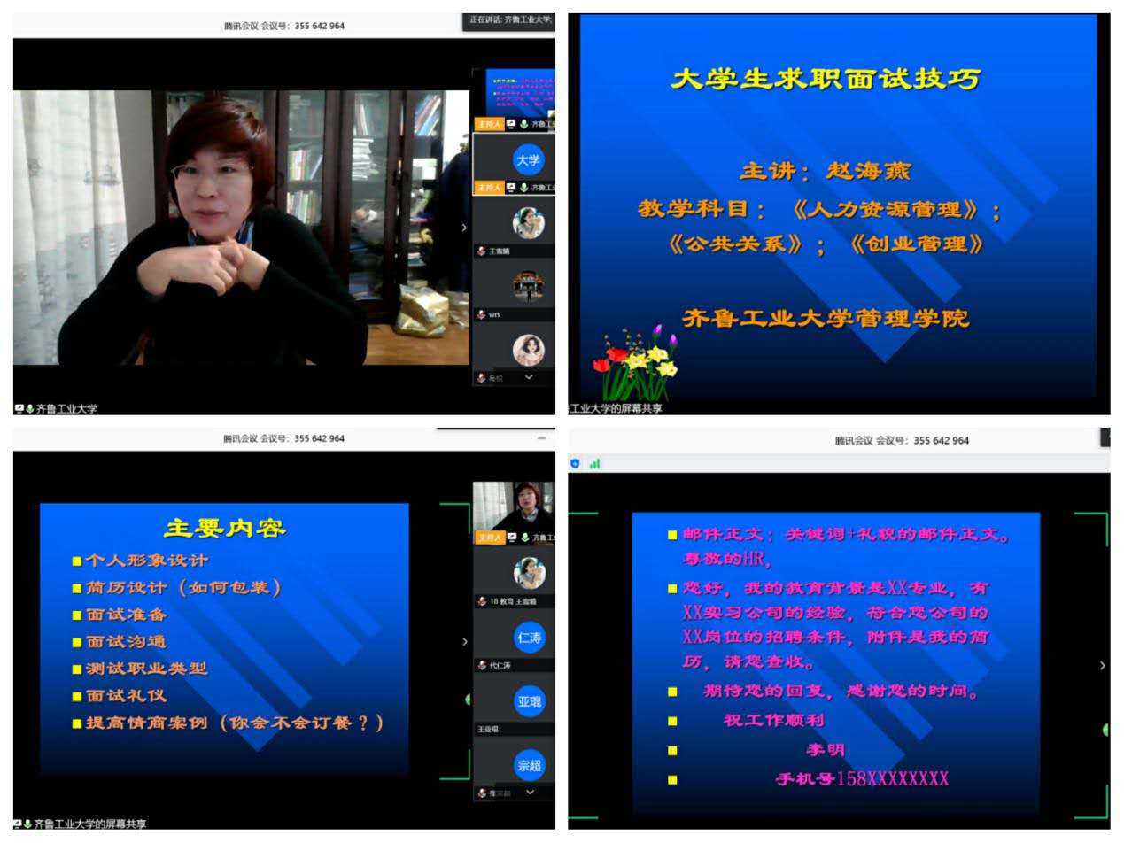 4月18日晚7点,大学生求职面试技巧专题线上培训准时召开。本次线上培训邀请齐鲁工业大学赵海燕老师担任主讲人,2048核基地