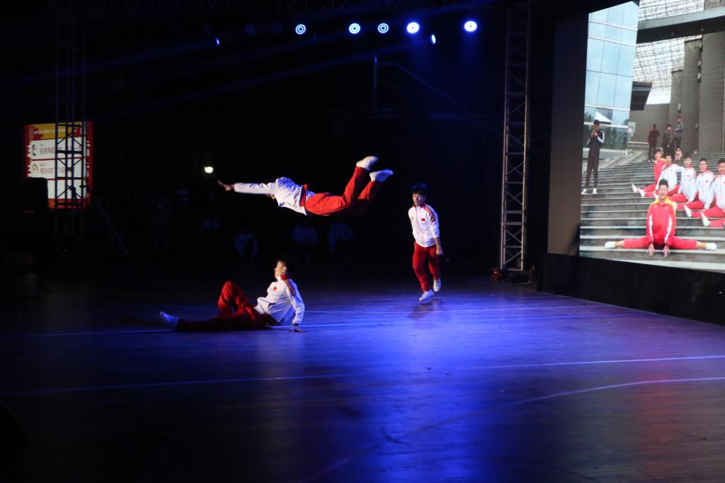 精彩的开场武术表演拉开了晚会的帷幕,歌曲《民谣》、《歌曲联唱》以及《童话》轮番登场,精彩连连。燃爆全场的恰恰《BOOM》;温暖动人的瑜伽《梦中的额吉》,激情四射的《竞技健美操》以及极具观赏性的跳绳表演《速度与激情》向大家展现了我院学生的多才多艺,青春洋溢。惊艳全场的研究生舞蹈串烧以独具特色的表演方式,赢得在场所有观众的阵阵呼声。师们合唱的《超越梦想》不仅彰显出我们2048核基地