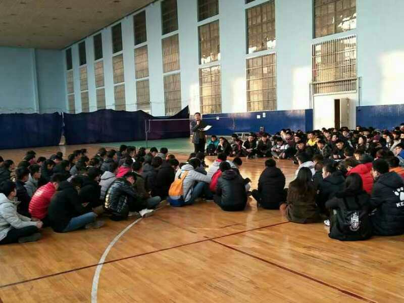 2014级全体学生大会在系楼新篮球馆举行。参加本次大会的主要成员有党委副书记展利民老师及2014级全体学生。本次大会由展利民老师宣讲。