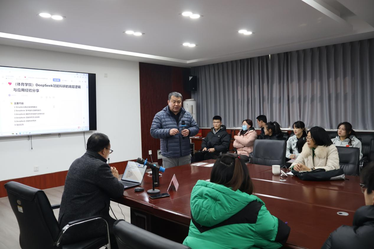 在讲座中,郭顺利副教授深入剖析了Deep Seek赋能科研的底层逻辑,结合自身丰富的科研经验,为在场师生分享了如何将这一前沿技术应用于体育科学研究中,助力解决实际问题、提升研究效率与质量。通过详实的案例与深入浅出的讲解,参会者对Deep Seek在科研中的应用有了更为清晰的认识与理解。